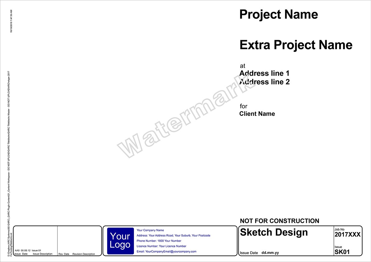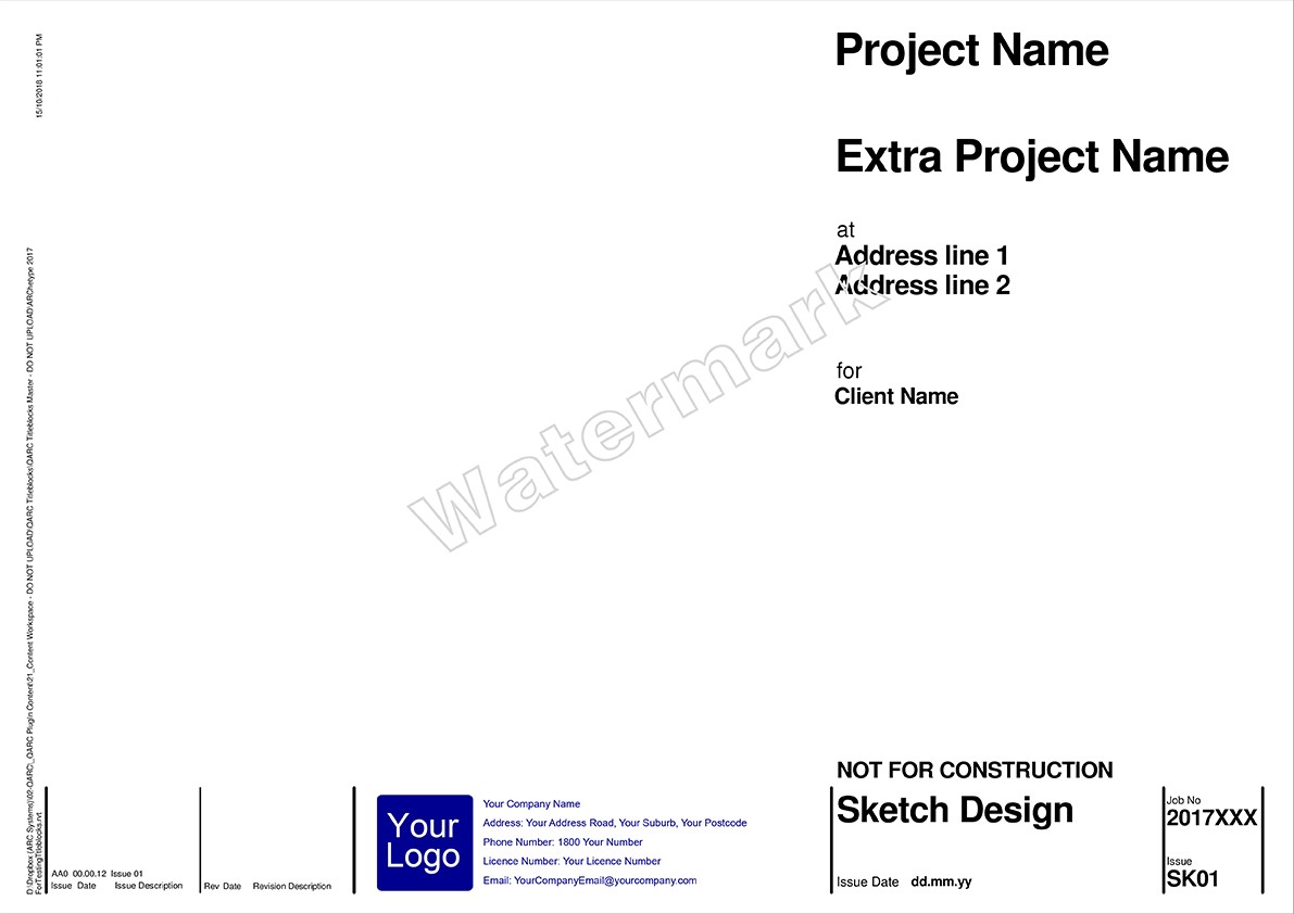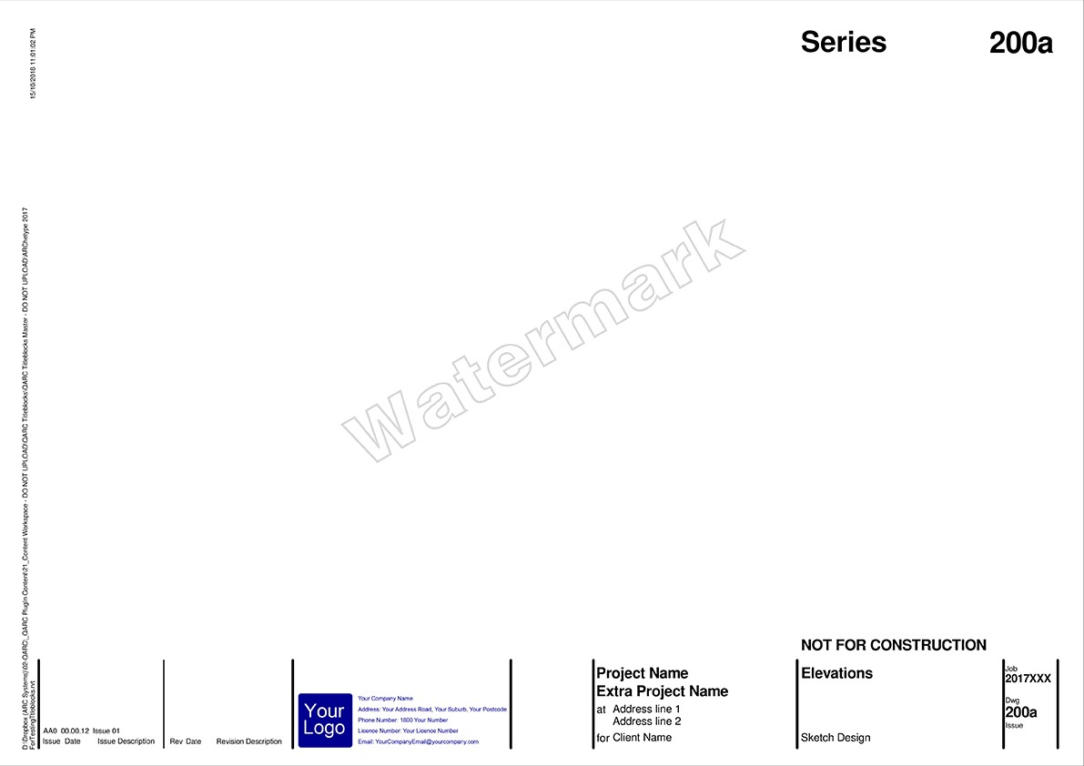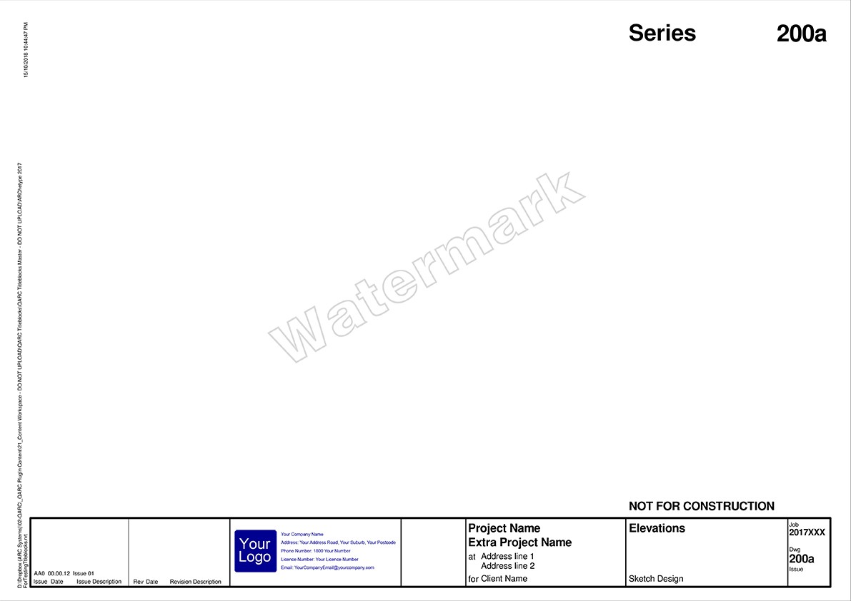 After you purchase PREMIUM+ go to the TITLEBLOCK SELECTION FORM to select your preferred combination. We will be in touch to obtain your logo and practice details for insertion into the Titleblocks.