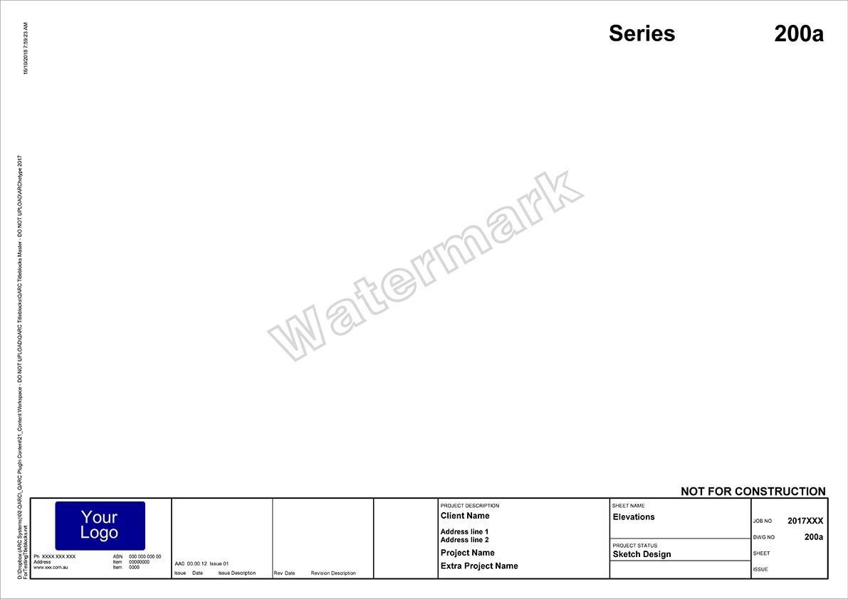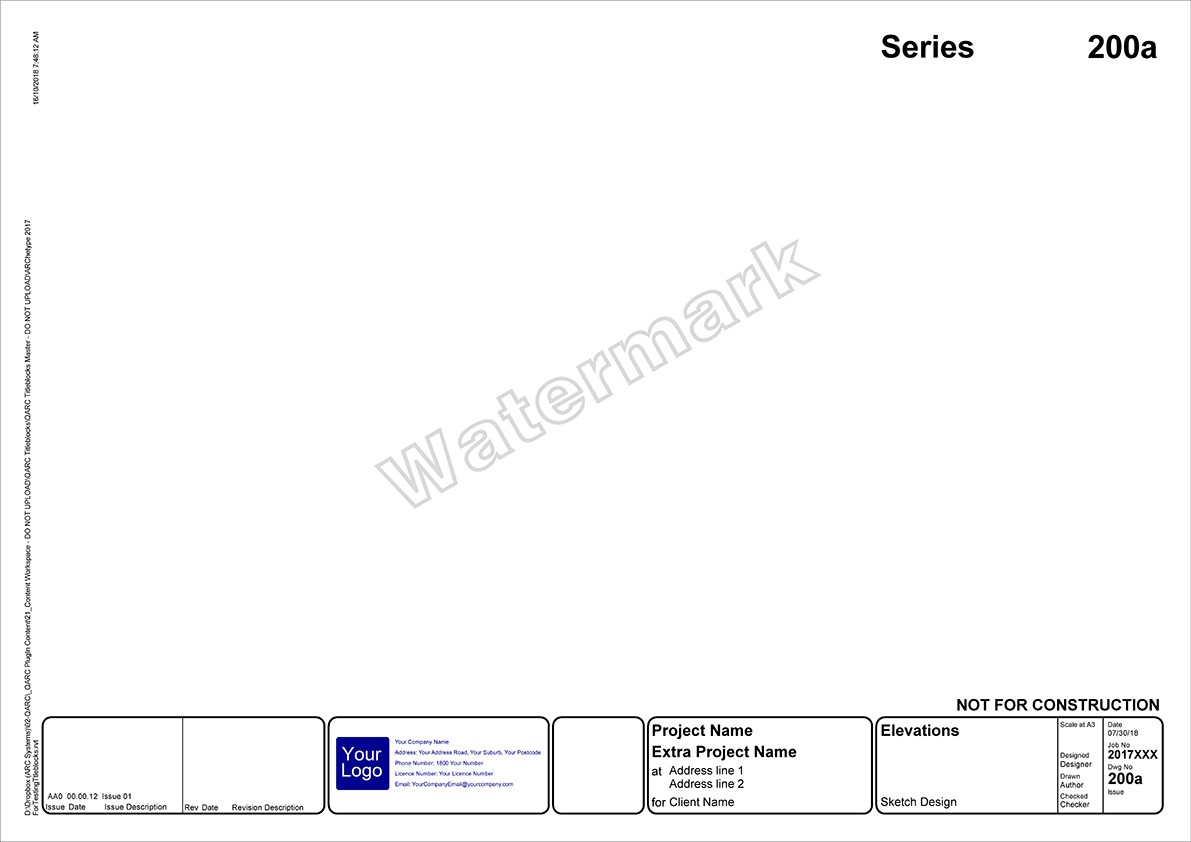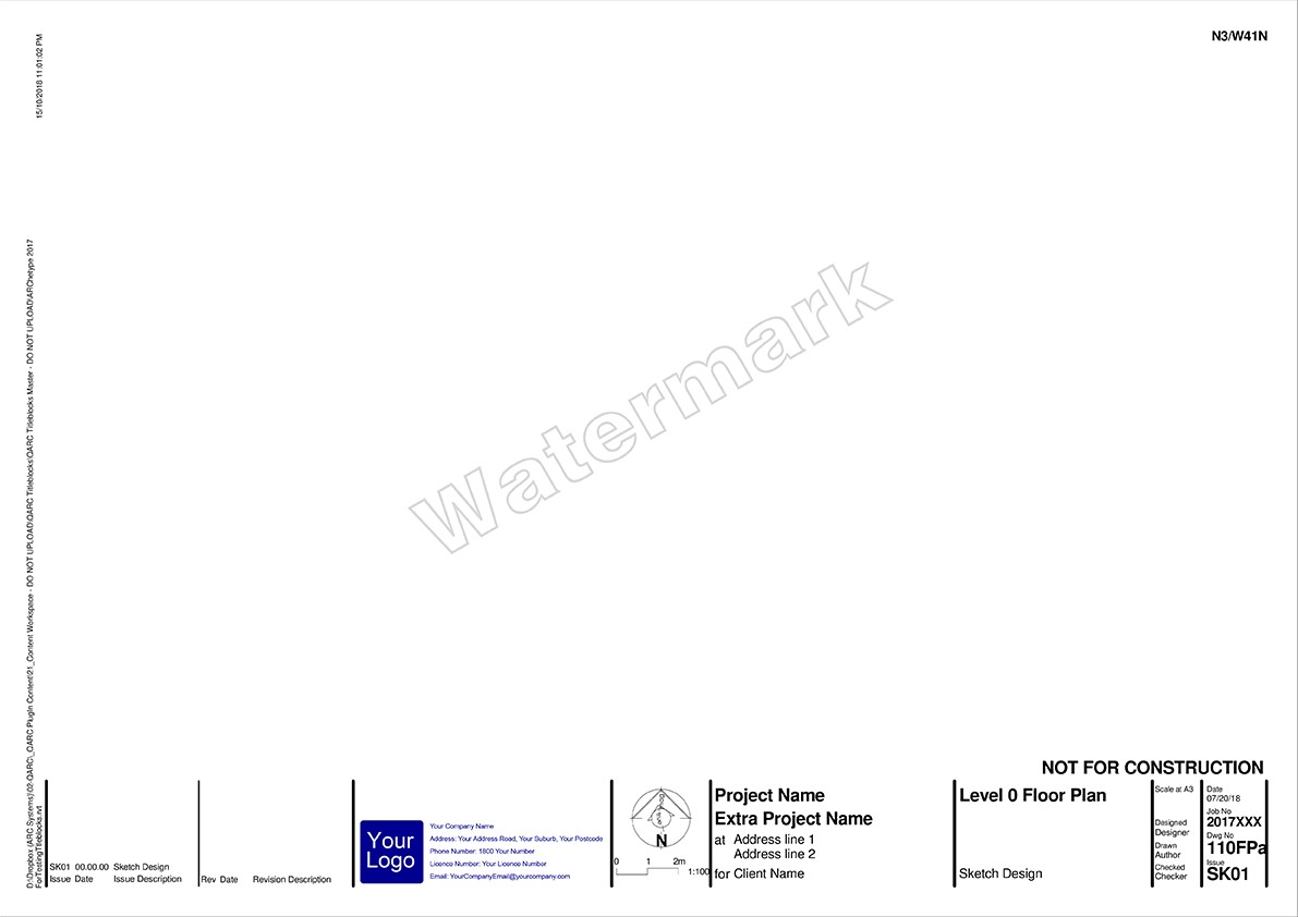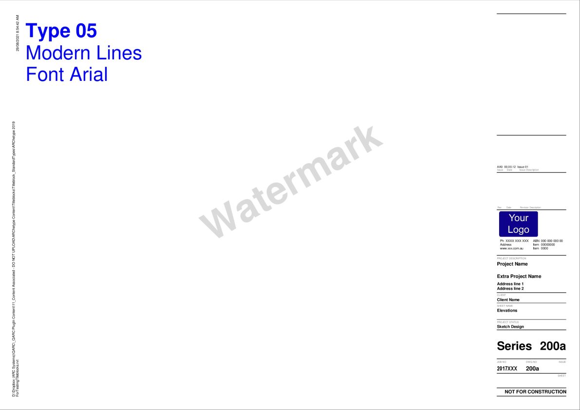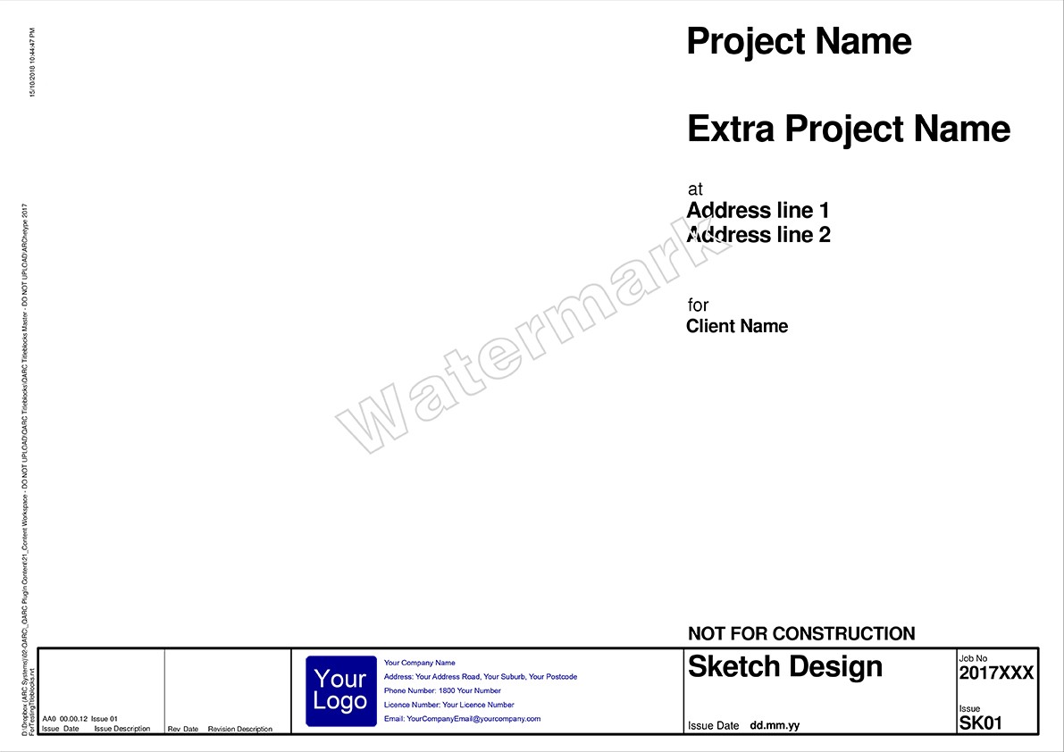 After you purchase PREMIUM+ go to the TITLEBLOCK SELECTION FORM to select your preferred combination. We will be in touch to obtain your logo and practice details for insertion into the Titleblocks.