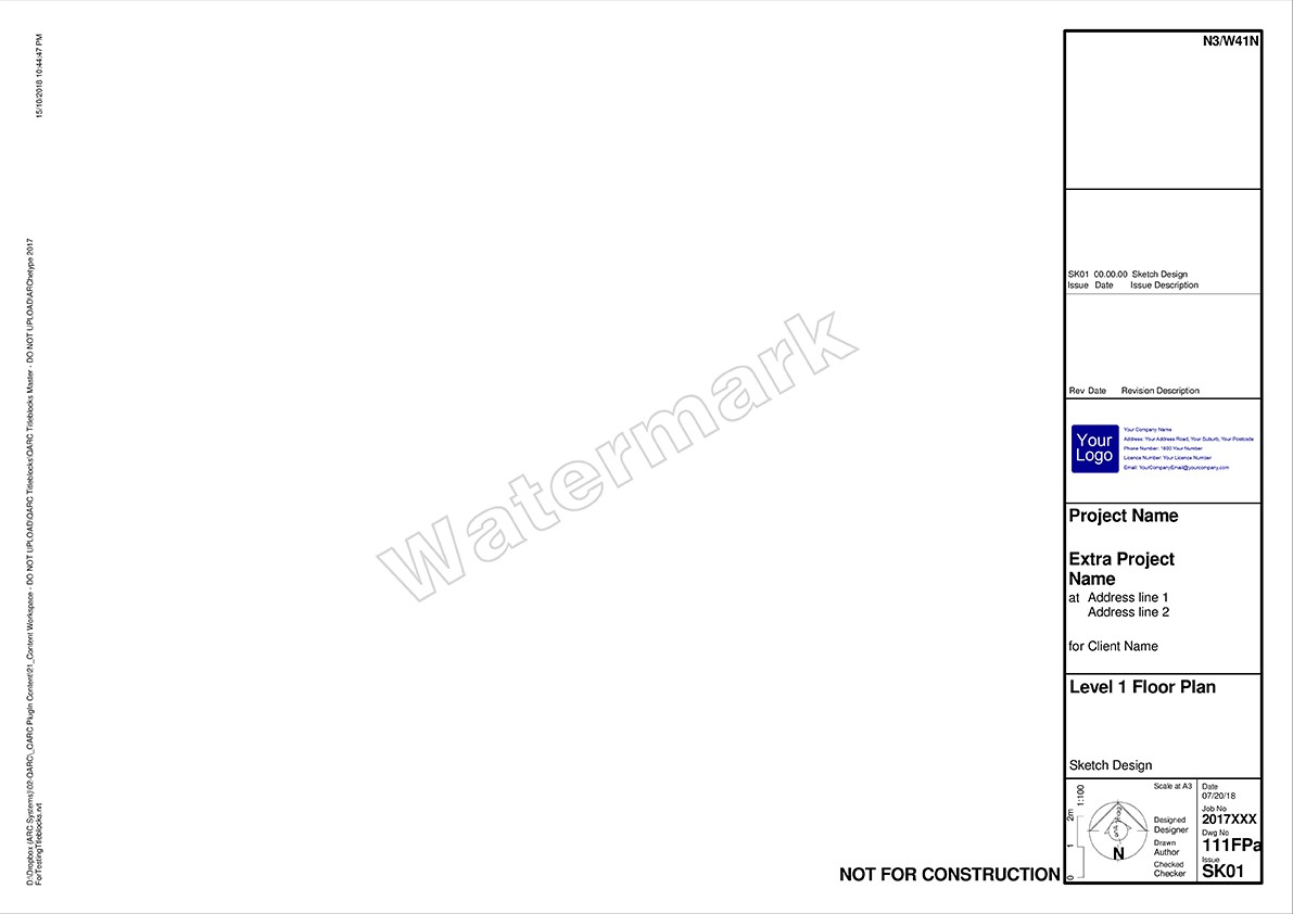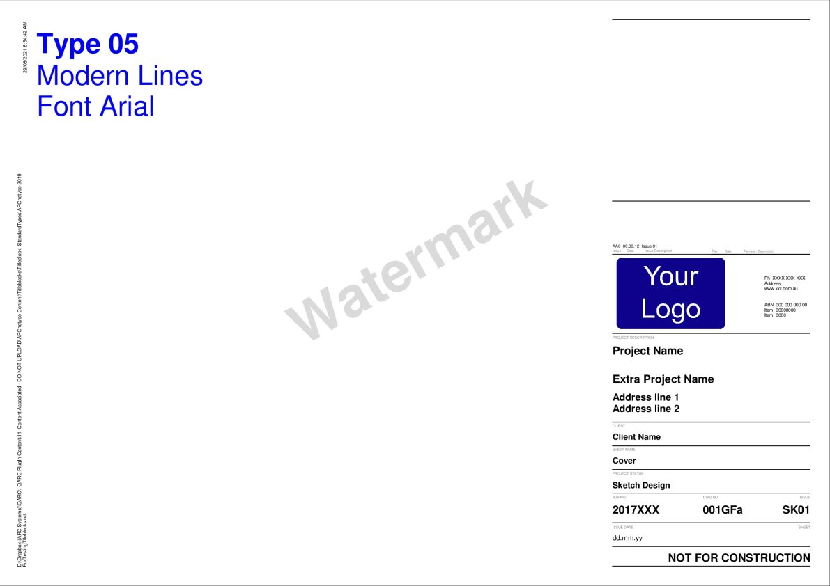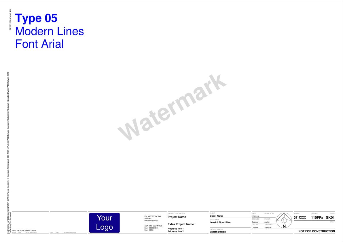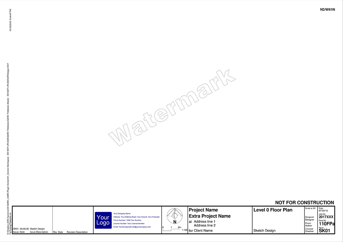 After you purchase PREMIUM+ go to the TITLEBLOCK SELECTION FORM to select your preferred combination. We will be in touch to obtain your logo and practice details for insertion into the Titleblocks.