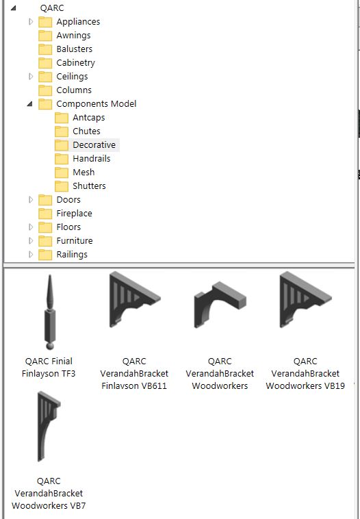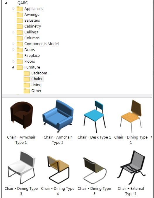 The Components folder is gradually increasing as we work through our content. As you can see the Components Model folder has items that do not fit elsewhere. In the QARC4Revit Plug-in browser, have a look and see what’s there.