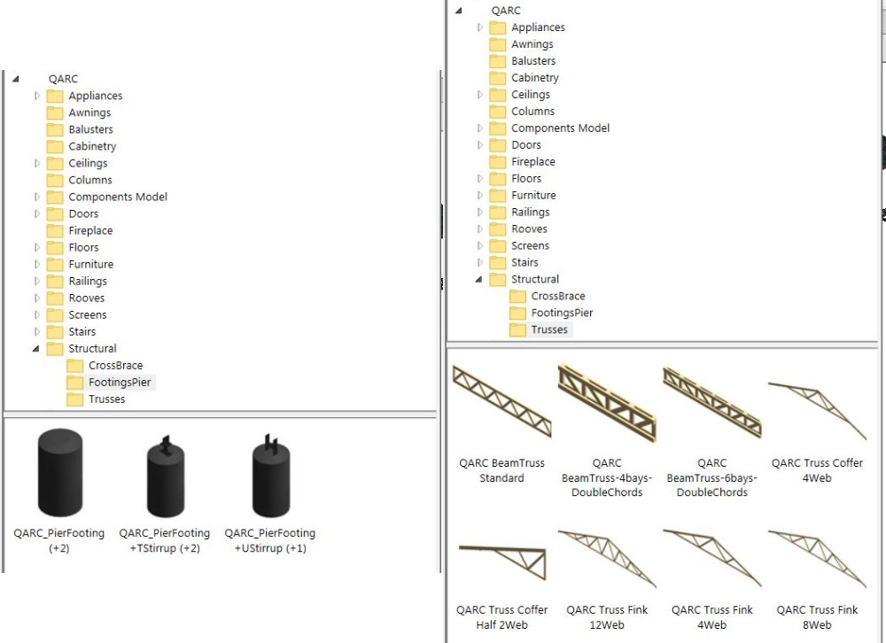 We are building up the Structural folder. It is mostly not engineering content, but ‘architectural’ components. The trusses and footings do not possess structural capacities. We are calling the folder “Structural” for the moment, and may call it something else. Any ideas?